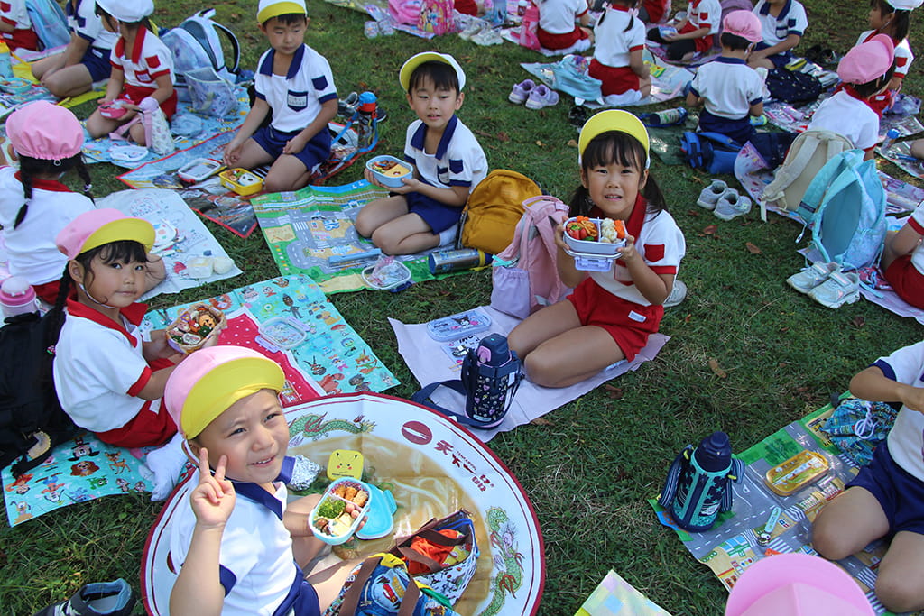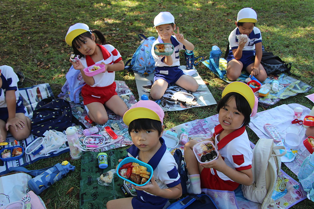 お昼はみんなでお弁当を広げ、笑顔あふれるピクニックタイム。