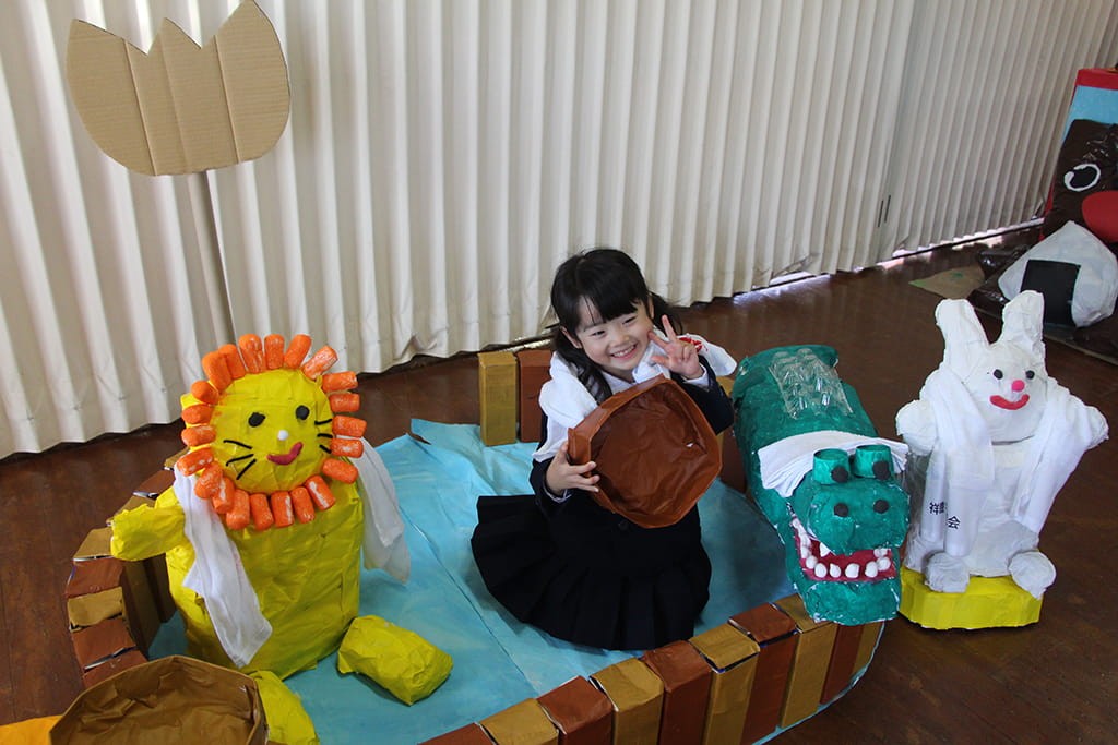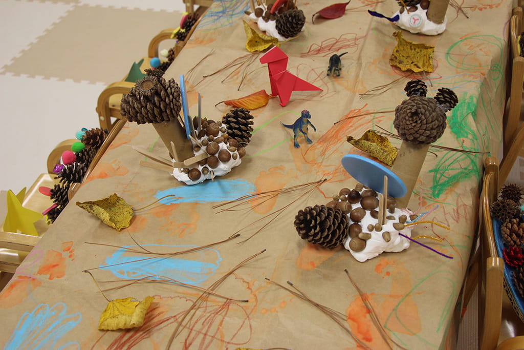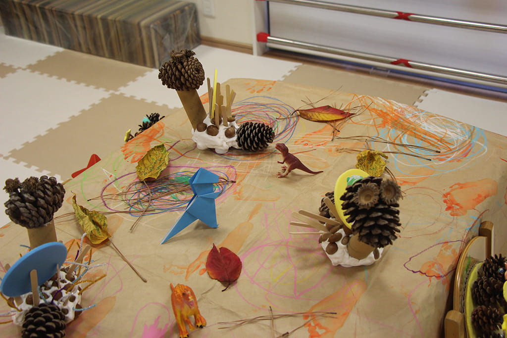 ページをめくるように場面がかわっていくので、子どもたちのつくった“えほんのもり”を、ゆっくり歩いてみてください。