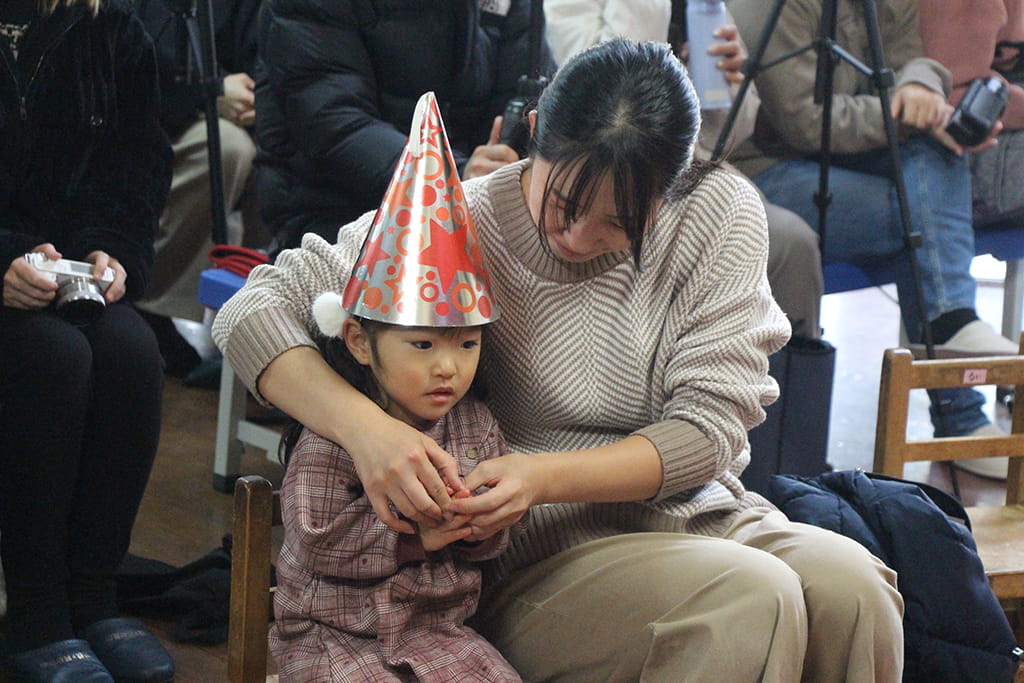 毎日、遊んだり、歌ったり、作ったり、たくさんのことにチャレンジしながら、「できた!」「たのしい!」を少しずつ見つけていきましょう。うまくいかない日があっても大丈夫。先生やお友だち、そして神さまが、いつもそばにいます。